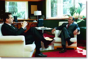 Josep Ferrer Llop, rector de la Universitat Politècnica de Catalunya, i Emilio Botín, president del Santander Central Hispano i del Portal Universia, s'han reunit, el 15 de maig al Rectorat de la UPC, per afermar les relacions existents entre ambdues institucions.